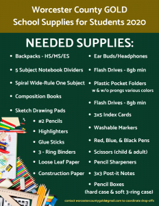 Worcester County GOLD School Supplies for Students 2020 Worcester County G.O.L.D. IncWorcester County GOLD School Supplies for Students 2020